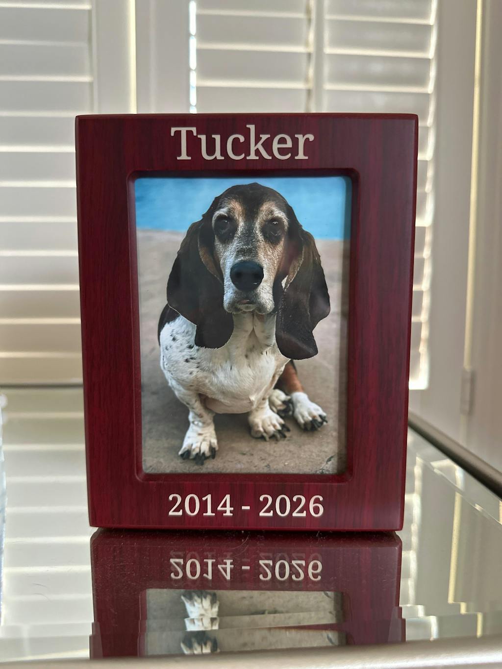 Urna de cremación grande para mascotas con marco de fotos de cerezo