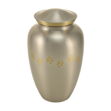 Urna de cremación extragrande para mascotas con banda clásica de peltre con estampado de pata