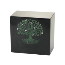 Urna de cremación para adultos de mármol negro con el Árbol de la Vida Verde