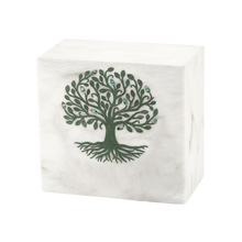 Urna de cremación para adultos de mármol blanco con diseño del Árbol de la Vida Verde