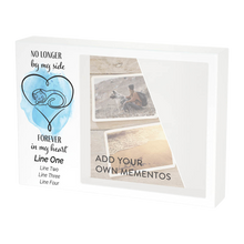 Un homenaje apacible para un querido compañero felino. La urna Shadow Box para cenizas y recuerdos de mascotas, con diseño de gato y corazón azul, captura el vínculo eterno entre la mascota y su dueño a través de un sereno corazón de acuarela azul y una elegante silueta felina. Elaborada en madera MDF , esta urna presenta un acabado pintado en blanco y la cariñosa frase "Ya no a mi lado, para siempre en mi corazón". Su diseño de caja de sombra ofrece espacio para guardar las cenizas de forma segura, además de exhibir fotos, collares o pequeños recuerdos favoritos. El panel trasero deslizante garantiza un acceso seguro, y el grabado negro opcional permite personalizar el texto para honrar a tu querido gato.