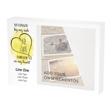 Un sentido homenaje a tu fiel amigo. La urna de caja de sombras para cenizas y recuerdos de mascotas, con diseño de perro y corazón amarillo, es un monumento cálido y moderno que combina a la perfección el recuerdo y la comodidad. Fabricada en resistente madera MDF , esta urna presenta un corazón amarillo brillante en acuarela que rodea la silueta de un perro y el tierno mensaje "Ya no a mi lado, para siempre en mi corazón". El diseño de la caja de sombras te permite exhibir el collar, fotos o recuerdos de tu mascota junto a sus cenizas. Su panel trasero deslizante garantiza un acceso fácil y seguro, mientras que el grabado negro opcional personaliza la urna con el nombre de tu perro, fechas o un mensaje cariñoso.