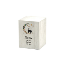 Urna de cremación grande para mascotas con incrustaciones de mármol blanco, gato y luna rosa