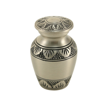 Honor your loved one with the Athenaeum Pewter Keepsake Urn, a timeless piece. Crafted in durablebrass with a dignified pewter finish, this small urn features a simple engraved leaf pattern that symbolizes remembrance and peace. Its compact size is designed to hold a small portion of ashes, making it ideal for sharing among family members or for keeping close in a cherished space at home. A secure threaded lid ensures lasting protection and a graceful display.