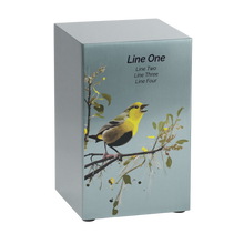 The Birds Pewter Companion Urn – Left Side is a beautifully designed adult cremation urn crafted from brushed stainless steel with a soft pewter finish. It features a vibrant songbird illustration symbolizing peace, freedom, and eternal remembrance. This urn provides a full 200 cubic inch capacity, secured by a bottom panel with four screws. It can be displayed on its own or paired with the Birds Pewter Companion Urn - Right Side to form a complete companion urn set.
