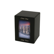 Black Photo Frame Medium Pet Cremation Urn offers a beautiful and practical way to honor your beloved pet’s memory. Crafted from durable MDF with a matte black finish, this urn combines a traditional keepsake with a photo display to celebrate a life well loved. A separate photo slot holds a 2.25” x 3.75” photograph, making it easy to personalize with your favorite image. With a 25 cubic inch capacity, it is suitable for pets weighing up to 25 lbs. The sliding back panel secured with a single screw ensures ashes are safely protected. Personalization is available with engraving in ivory lettering, allowing you to add your pet’s name, dates, or a heartfelt message.