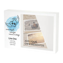 The Blue Angel Wings Memento Large Pet Cremation Urn is a heartfelt memorial for a beloved companion. Crafted from durable MDF (Medium Density Fiberboard), this urn features a white finish with a touching blue angel wings and paw print heart design. The message “Some angels have fur instead of wings” adds meaning, while the shadowbox-style compartment lets you display photos, toys, or mementos. A secure sliding panel discreetly holds your pets. Optional engraving personalization creates a unique and lasting tribute.