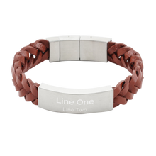 The Braided Brown Leather Pewter Cremation Bracelet combines genuine braided brown leather with a sleek pewter-tone stainless steel accent bar to create a warm and contemporary memorial accessory. Designed with a discreet threaded back closure, the stainless steel bar holds a nominal amount of ashes within a secure interior compartment. The bracelet features an 8.5-inch circumference for comfortable daily wear and offers personalization with engraving in a coordinating pewter engraving color.