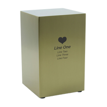 The Bronze Stainless Steel Box Adult Cremation Urn offers a sleek and timeless design that embodies strength and sophistication. Crafted from premium stainless steel, this urn features a brushed bronze finish that radiates understated elegance and warmth. Its clean, rectangular form complements both contemporary and classic memorial settings. Designed with a 200 cubic inch capacity and a secure four-screw bottom closure, it ensures the safekeeping of your loved one’s ashes. Optional black engraving allows for personal touches such as names, dates, or heartfelt messages, creating a dignified and lasting tribute.