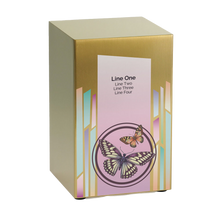 The Brushed Bronze Stainless Steel Butterfly Art Adult Cremation Urn embodies transformation, grace, and the enduring beauty of life. Expertly crafted from premium stainless steel, this urn features a brushed bronze finish complemented by a luminous butterfly design in pastel hues. The urn offers a secure 4-screw bottom closure and a 200 cubic inch capacity, ensuring strength and elegance. It can be personalized with black engraving to create a truly heartfelt and lasting memorial.