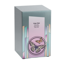 The Brushed Pewter Stainless Steel Butterfly Art Adult Cremation Urn captures the delicate beauty of transformation and remembrance. Made from durable stainless steel, this urn features a soft brushed pewter finish adorned with a luminous butterfly design inspired by stained glass artistry. It includes a secure 4-screw bottom closure and a 200 cubic inch capacity to ensure strength and protection. This urn can be personalized with black engraving to create a truly meaningful and lasting tribute.
