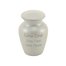 The Classic American Flag White Keepsake Urn is a timeless tribute to honor a loved oneâs service and patriotism. Crafted from durable brass with a smooth white finish, this keepsake features a detailed American flag design, symbolizing courage, loyalty, and pride. Its compact size is ideal for holding a small portion of ashes, keeping memories close at home or during memorial ceremonies. The secure threaded lid ensures protection, while the urn can also be personalized with engraving in a dignified pewter tone.
