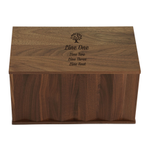 The Dimensional Walnut Wood Screw Closure Adult Cremation Urn is a handcrafted wooden urn made from rich solid walnut with a striking dimensional panel design. Its natural wood grain and warm tones reflect strength and dignity, offering a timeless way to honor a loved one. With a 200 cubic inch capacity, this urn is suitable for most adults. The innovative screw-in bottom closure ensures secure placement of ashes, while optional personalization allows families to create a meaningful tribute.