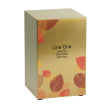 The Foliage Leaf Bronze Companion Urn – Left Side is a distinguished memorial. Crafted from brushed stainless steel with a warm bronze finish. Its intricate foliage leaf design in autumn-inspired tones symbolizes change, renewal, and eternal remembrance. This full-size adult cremation urn provides a 200 cubic inch capacity and is secured with a bottom panel fastened by four screws. Designed to be displayed individually or paired with the Foliage Leaf Bronze Companion Urn - Right Side, it forms a complete companion urn set to honor two lives together.