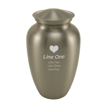 The High Gloss Pewter Stainless Steel Adult Cremation Urn offers a timeless tribute defined by simplicity, strength, and elegance. Made from solid stainless steel, this urn features a smooth high gloss pewter finish that radiates quiet dignity. It has a 200 cubic inch capacity suitable for adult ashes and a threaded lid closure to ensure secure protection. Personalization is available, with pewter-colored engraving that contrasts beautifully against the pewter tone.