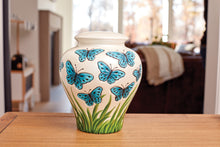 Ivory Ceramic Blue Butterflies Adult Cremation Urn