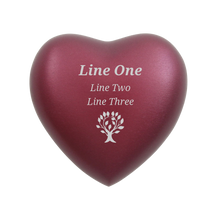 The Magenta Aluminum Heart Keepsake Urn is a symbolic and compact memorial designed to hold a small portion of ashes. Made from durable aluminum with a vibrant magenta metallic finish, it features a smooth heart-shaped form that represents eternal love. With a capacity of 3 cubic inches, this urn is secured with a threaded back closure to keep contents safe. It offers personalization with silver engraving, allowing families to create a truly meaningful tribute.