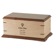 Maple and Walnut Corner Inlays Wood Adult Cremation Urn