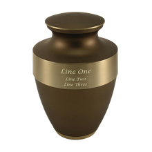 Matte Brown Brass Gold Accent Band Adult Cremation Urn