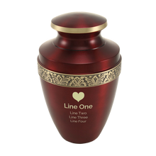 Metallic Crimson Brass Gold Accent Band Adult Cremation Urn