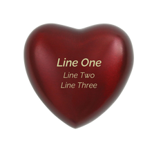 The Metallic Crimson Brass Heart Keepsake Urn is a beautifully symbolic piece designed to hold a small portion of ashes. Crafted from brass with a deep crimson metallic finish, it features a smooth heart-shaped form that reflects enduring love and remembrance. With a capacity of 3 cubic inches, it is secured with a threaded back closure to keep contents safe. It offers personalization with brass engraving, creating a lasting tribute tailored to your loved one.
