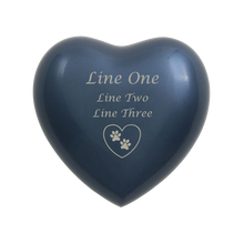 The Moonlight Blue Brass Heart Keepsake with Glossy Finish is a beautiful handcrafted memorial symbolizing peace and eternal love. Made from solid brass with a high-gloss moonlight blue finish, this elegant keepsake is designed to hold a small portion of ashes as a lasting tribute. The heart shape represents devotion and remembrance, while the threaded back closure ensures security. Personalization is available with pewter engraving, allowing you to add a name, date, or short message for a meaningful touch.