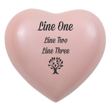 The Pearl Pink Glossy Heart Small Cremation Urn is a beautifully crafted keepsake made of solid brass with a smooth pearl pink glossy enamel finish. Shaped as a tender heart, it offers an internal capacity of 20 cubic inches, making it ideal for holding a meaningful portion of ashes or for use as a smaller memorial urn. The urn closes securely with a back panel closure, while optional personalization in black engraving allows families to add names, dates, or a short sentiment for a one-of-a-kind tribute.