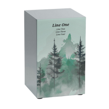 The Pewter Stainless Steel Tranquil Forest Adult Cremation Urn provides a peaceful and enduring tribute to nature's quiet beauty. Constructed from durable stainless steel with a brushed pewter finish, this rectangular urn features a serene Tranquil Forest design, depicting a calm woodland scene. It offers a capacity of 200 cubic inches, making it suitable for most adults, and is secured by a bottom panel with screws to ensure the ashes remain safe. Personalization is available with black engraving, allowing families to add a name or date to create a unique memorial.