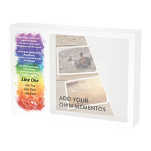 The Shadow Box Urn for Large Pet Ashes & Memento with Rainbow Bridge Paw Prints offers a comforting way to honor your pet while preserving their cherished memories. Made from MDF with a clean white finish, the side panel features a watercolor rainbow background with a gentle trail of white paw prints, symbolizing your companion’s journey across the Rainbow Bridge. This urn has a 70 cubic inch capacity and closes securely with a sliding back panel. The display area provides space for photos, collars, or keepsakes, creating a deeply personal memorial.