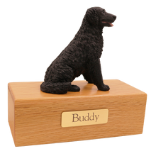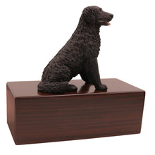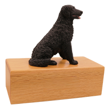 The Simply Series Black Longhaired Labrador, Sitting Figurine Pet Cremation Urn is a refined pet cremation urn and Labrador urn featuring a detailed sitting figurine on a furniture-style base. Choose Simply Oak (hardwood) & Simply Walnut (medium density fiberboard (MDF) with real walnut wood veneers and a dark walnut stain) for an elegant indoor pet memorial. Pet ashes are installed through a removable bottom panel secured with screws for a dependable, secure pet urn closure. Optional engraving is available on a premium leaded brass nameplate (2 lines, max 25 characters per line). Figurines are attached facing forward; photos may show a different angle selected to highlight the figurineâs shape. Colors may vary slightly due to lighting and screen settings.