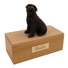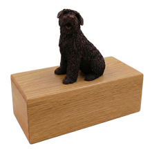 The Simply Series Bronze Bouvier, Sitting Figurine Pet Cremation Urn is a refined pet cremation urn and Bouvier urn featuring a sitting figurine with a bronze-like finish on a furniture-style base. Choose Simply Oak (hardwood) & Simply Walnut (MDF with real walnut wood veneers and a dark walnut stain) for an elegant indoor pet memorial. Pet ashes are installed through a removable bottom panel secured with screws for a dependable, secure pet urn and screw-secured bottom panel closure. Optional engraving is available on a premium leaded brass nameplate (2 lines, max 25 characters per line). Figurines are attached facing forward; photos may show a different angle selected to highlight the figurineâs shape. Colors may vary slightly due to lighting and screen settings.
