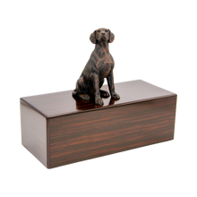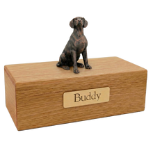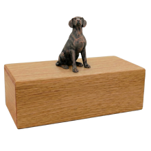 The Simply Series Bronze Dalmatian, Sitting Figurine Pet Cremation Urn is a refined pet cremation urn and Dalmatian urn featuring a sitting figurine with a bronze-like finish on a furniture-style base. Choose Simply Oak (hardwood) & Simply Walnut (MDF with real walnut wood veneers and a dark walnut stain) for an elegant indoor pet memorial. Pet ashes are installed through a removable bottom panel secured with screws for a dependable, secure pet urn and screw-secured bottom panel closure. Optional engraving is available on a premium leaded brass nameplate (2 lines, max 25 characters per line). Figurines are attached facing forward; photos may show a different angle selected to highlight the figurine’s shape. Colors may vary slightly due to lighting and screen settings.