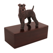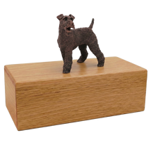 The Simply Series Bronze Fox Terrier, Standing Figurine Pet Cremation Urn is a refined pet cremation urn and figurine urn designed as a timeless pet memorial for honoring a spirited companion. The resin Fox Terrier figurine features a bronze-like finish and rests on Simply Oak & Simply WalnutâSimply Oak is hardwood, while Simply Walnut is MDF with real walnut wood veneers and a dark walnut stainâcreating an elegant Oak & Walnut style pet urn for home display. Pet ashes are installed through a removable bottom panel secured with screws for safe keeping, and an optional engraved brass nameplate is available on premium leaded brass (2 lines, max 25 characters per line). Figurines are attached facing forward (photos may show different angles), and colors may vary slightly due to lighting/screen settings.