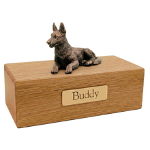 The Simply Series Bronze German Shepherd, Lying Down Figurine Pet Cremation Urn is a refined pet cremation urn and German Shepherd urn featuring a lying down figurine with a bronze-like finish on a furniture-style base. Choose Simply Oak (hardwood) & Simply Walnut (MDF with real walnut wood veneers and a dark walnut stain) for an elegant indoor pet memorial. Pet ashes are installed through a removable bottom panel secured with screws for a dependable, secure pet urn and screw-secured bottom panel closure. Optional engraving is available on a premium leaded brass nameplate (2 lines, max 25 characters per line). Figurines are attached facing forward; photos may show a different angle selected to highlight the figurineâs shape. Colors may vary slightly due to lighting and screen settings.