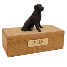 The Simply Series Bronze Labrador, Sitting Figurine Pet Cremation Urn is a refined pet cremation urn and figurine urn created as a timeless pet memorial for honoring a loyal companion. The resin Labrador figurine features a bronze-like finish and rests on Simply Oak & Simply WalnutâSimply Oak is hardwood, while Simply Walnut is MDF with real walnut wood veneers and a dark walnut stainâcreating an elegant Oak & Walnut style pet urn for home display. Pet ashes are installed through a removable bottom panel secured with screws for safe keeping, and an optional engraved brass nameplate is available on premium leaded brass (2 lines, max 25 characters per line). Figurines are attached facing forward (photos may show different angles), and colors may vary slightly due to lighting/screen settings.