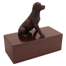 The Simply Series Bronze Rottweiler, Sitting Figurine Pet Cremation Urn is a refined pet cremation urn and figurine urn designed as a timeless pet memorial for honoring a devoted companion. The resin Rottweiler figurine features a bronze-like finish and rests on Simply Oak & Simply WalnutâSimply Oak is hardwood, while Simply Walnut is MDF with real walnut wood veneers and a dark walnut stainâcreating an elegant Oak & Walnut style pet urn for home display. Pet ashes are installed through a removable bottom panel secured with screws for safe keeping, and an optional engraved brass nameplate is available on premium leaded brass (2 lines, max 25 characters per line). Figurines are attached facing forward (photos may show different angles), and colors may vary slightly due to lighting/screen settings