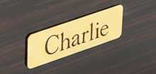 The Simply Walnut & Simply Oak Medium Pet Cremation Urn with Adornment is crafted from high-quality MDF in a walnut or oak finish and features a decorative wooden bone, heart, or paw print. A centered premium leaded brass nameplate provides space for 3 lines of personalization, up to 25 characters per line. Ashes are secured through a felt-lined bottom panel with screws for tamper resistant protection. The Medium size holds up to 35 cubic inches of cremains and is suitable for pets up to 28 lbs.