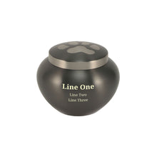 The Slate Paw Print Small Pet Cremation Urn is crafted from durable brass and finished with a sleek slate tone accented by brushed pewter paw prints. This petite urn holds up to 25 cubic inches of ashes, making it ideal for smaller pets or sharing remains among family members. The threaded lid ensures a secure closure, while optional engraving provides space for names or heartfelt messages in a brass tone. A timeless design that honors the love and loyalty of a cherished companion.