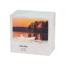 The Tranquil Sunset Fishing White Marble Adult Cremation Urn is crafted from natural white marble with unique veining that makes each piece one of a kind. A calming sunset fishing scene decorates the front, honoring a loved one’s connection to peaceful days on the water. This urn provides a 200 cubic inch capacity and secures with a threaded bottom closure for lasting protection. Personalization with black engraving offers a meaningful way to memorialize their name, dates, or a special message.