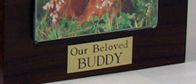 The Wooden Pet Urn with Sitting Dalmatian Figurine & 3.5x5 Inches Photo Holder is a beautifully crafted pet cremation urn and photo urn made from solid hardwood lumber to honor your companion with a lasting pet memorial. Available in Maple, Oak, and Walnut wood colors, it’s designed for Horizontal photo display with an included 3.5″ × 5″ photo holder, pairing a cherished photo with a loyal Sitting Dalmatian figurine. Your pet ashes are placed inside through a removable bottom secured with screws for safe, stable storage, and you may add an optional premium leaded brass nameplate (2 lines, max 25 characters per line) to personalize this pet urn, photo urn, and dog urn tribute. Photos may show different angles. Colors may vary slightly due to lighting and screen settings.