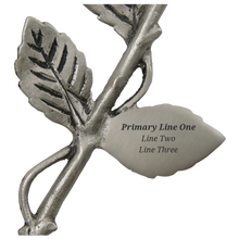 The Yellow Rose with Pewter Stem Keepsake Urnis a beautifully crafted memorial piece made of brass, designed to resemble a single blooming rose with a detailed pewter-finished stem. Its yellow enamel petals symbolize friendship, remembrance, and light. With a discreet threaded rosebud closure and silicone plug, the urn provides secure placement of a nominal amount of ashes. Personalization is available, with engraving in black on the leaf-shaped plaque to honor your loved one with names, dates, or short messages.